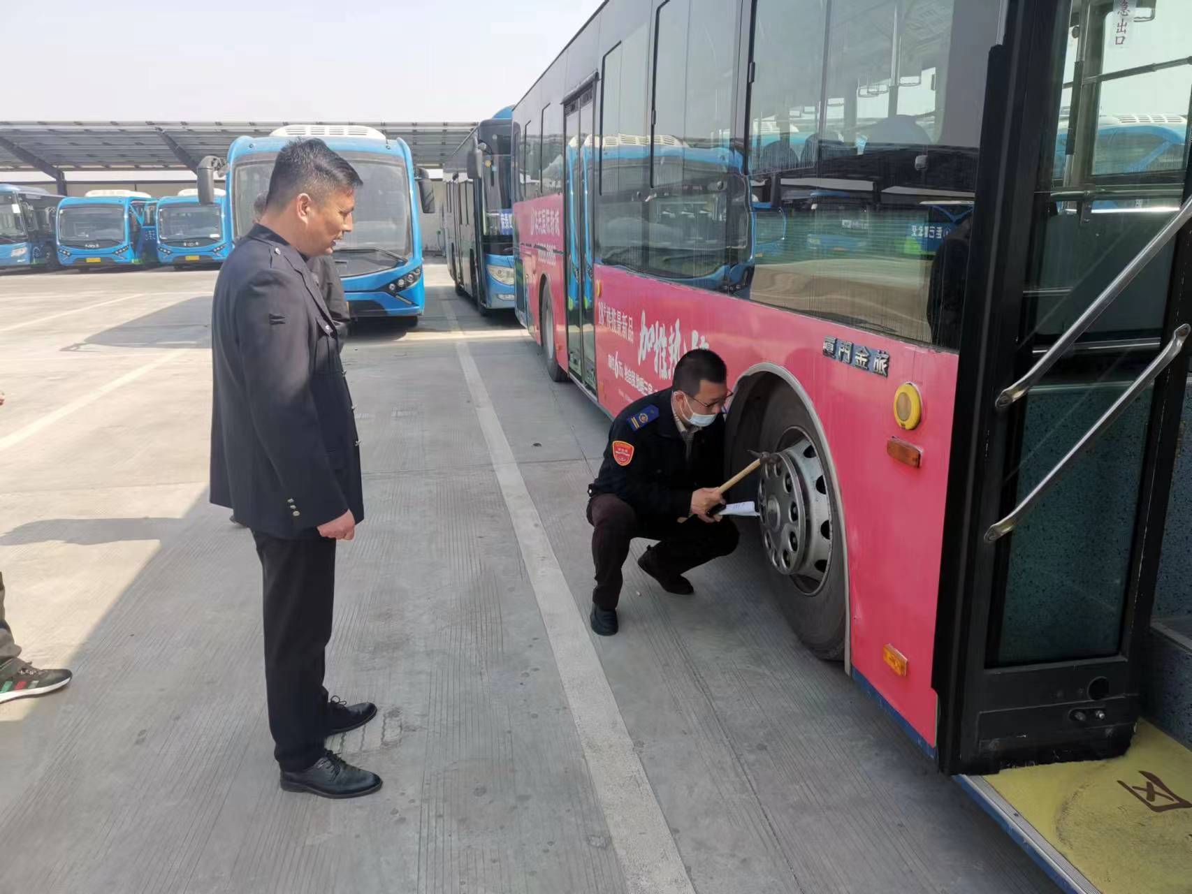 為加強(qiáng)車輛管理, 杜絕安全事故隱患, 確保車輛安全高效運(yùn)行,近日,經(jīng)營發(fā)展事業(yè)部分公司經(jīng)理吳春建帶領(lǐng)相關(guān)機(jī)務(wù)人員在徐圩公交客運(yùn)站內(nèi)。在檢查過程中,車輛整體維護(hù)較好,但部分駕駛員對車輛的“一日三檢”工作落實(shí)不到位,存在少檢、漏檢問題,對此檢查人員對駕駛員當(dāng)面指正并進(jìn)行安全教育。