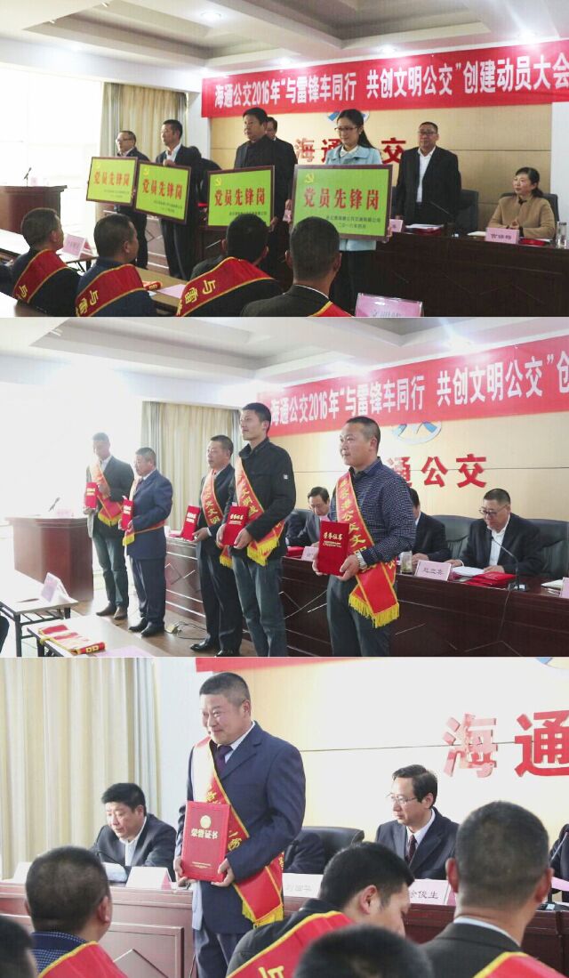 在動員大會上,公司黨委對2015年度“與雷鋒車同行”文明創(chuàng)建先進集體、“黨員先鋒崗”活動先進個人及公交“十佳明星”進行了表彰。會議圍繞2016年“與雷鋒車同行,共創(chuàng)文明公交”活動方案和開展向駕駛員喬曉峰學習活動,對2016年文明創(chuàng)建進行了部署。基層單位代表、“港城網絡善行榜”上榜人物喬曉峰做了表態(tài)發(fā)言。