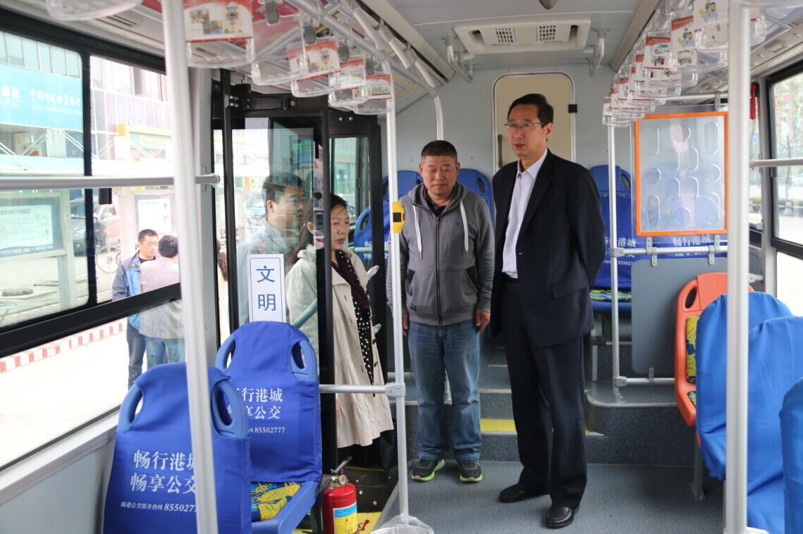 集團(tuán)黨委書記劉永能認(rèn)真聽取了公司總經(jīng)理劉佃華對(duì)23路“敬老文明線”的工作匯報(bào),參觀了23路“敬老文明線”車廂內(nèi)服務(wù)設(shè)施。了解文明線的開展和駕駛員們的工作、生活情況后,集團(tuán)劉書記對(duì)大家愛崗敬業(yè)、服務(wù)乘客、奉獻(xiàn)社會(huì)的精神給予贊揚(yáng),他要求公交廣大駕駛員再接再厲,更好地為廣大乘客服務(wù),繼續(xù)發(fā)揚(yáng)示范引領(lǐng)作用,推動(dòng)海通公交公司精神文明建設(shè)再上新臺(tái)階。