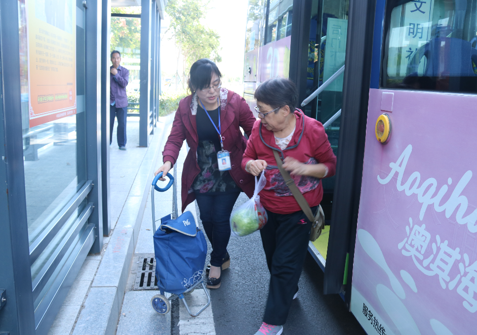 上午9時(shí),乘車的多是提著大袋小袋買完菜準(zhǔn)備回家的老人,工作人員趕忙上前攙扶老人,并拎過(guò)他們手中的重物,直到他們?nèi)胱?,老人臉上笑開了花,一聲聲問(wèn)候,一句句感謝。一位老奶奶拉著工作人員的手說(shuō):“我一上這車呀,都感到心里暖暖的!”車廂內(nèi)充滿了歡聲笑語(yǔ)。