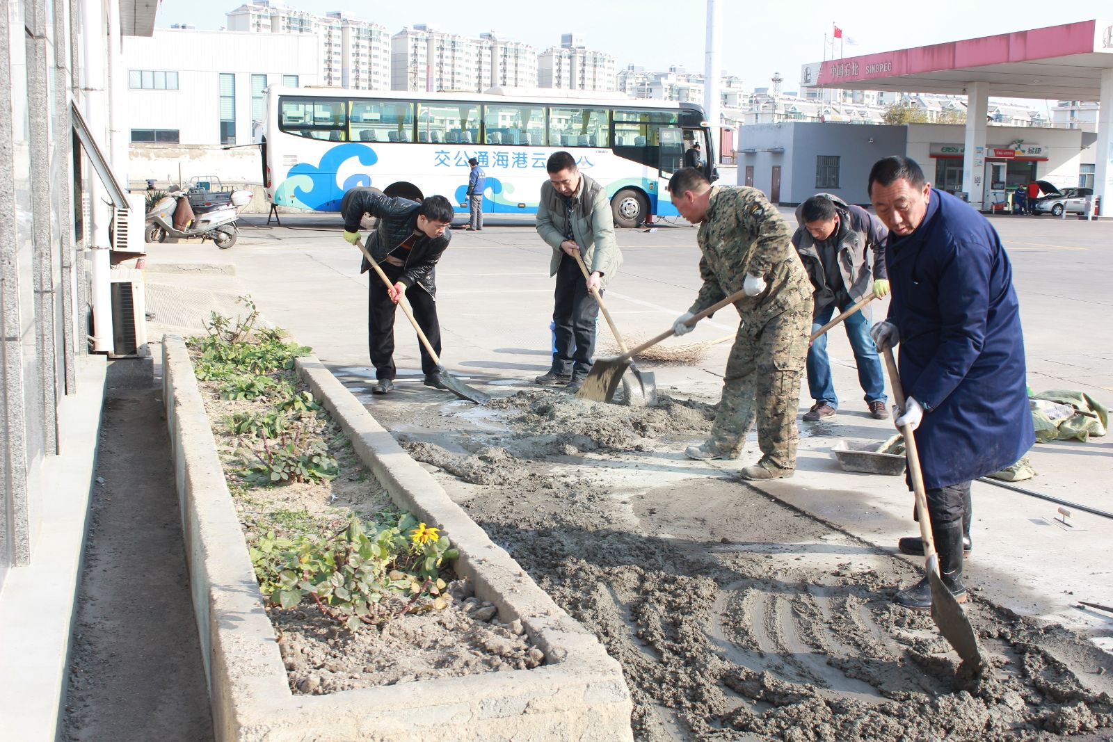 為做好創(chuàng)衛(wèi)工作,確保責(zé)任區(qū)域干凈、整潔及美化工作環(huán)境,12月9日上午,公交東部公司開展公司總站場地面修繕工作。公司副書記寧濘、副經(jīng)理張煒帶領(lǐng)管理人員將公司場站內(nèi)多處破損的水泥地面重新修補(bǔ)平整。由于缺少相關(guān)材料和工具,大家獻(xiàn)計(jì)獻(xiàn)策、分工合作,有的攪拌水泥、有的用抹子將水泥面抹平……整個(gè)過程進(jìn)展很順利,地面修繕效果較好。
