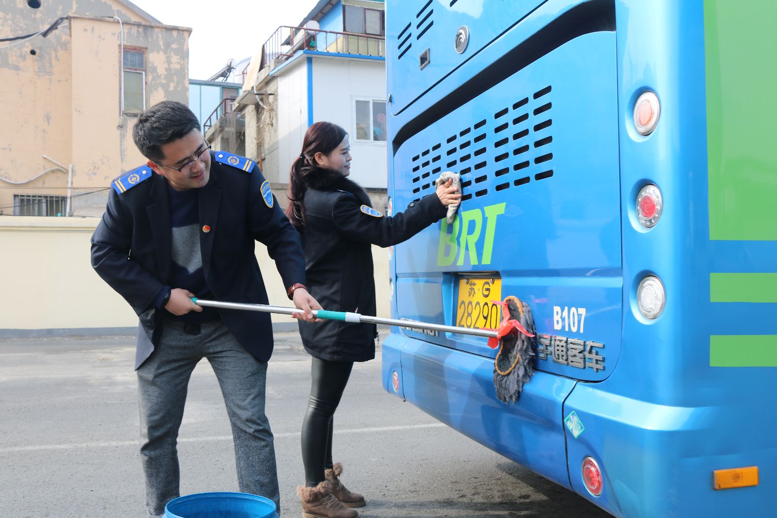 公交快速公司認(rèn)真貫徹落實(shí)社會主義核心價值觀,加強(qiáng)窗口文明行業(yè)建設(shè),積極踐行公交優(yōu)秀、公交優(yōu)先。2017年3月3日下午,快速公交四樓管理人員共12人,分成三組在海州客運(yùn)站對B1線車輛和B12線車輛車廂衛(wèi)生進(jìn)行一趟一掃一抹。參加活動的管理人員,逐一打掃進(jìn)站車輛車廂衛(wèi)生,擦洗座位、窗裙、玻璃和扶手,為乘客乘車出行提供良好的乘車環(huán)境。此次活動的目的是帶動廣大駕駛員提升服務(wù)理念、優(yōu)化車廂環(huán)境,認(rèn)真落實(shí)公交十項(xiàng)服務(wù)承諾,切實(shí)做到車輛衛(wèi)生一日一大掃、一趟一小掃、雨過天晴車身干凈。以優(yōu)質(zhì)服務(wù)、優(yōu)美環(huán)境、優(yōu)良秩序?yàn)槌丝吞峁M意服務(wù)。