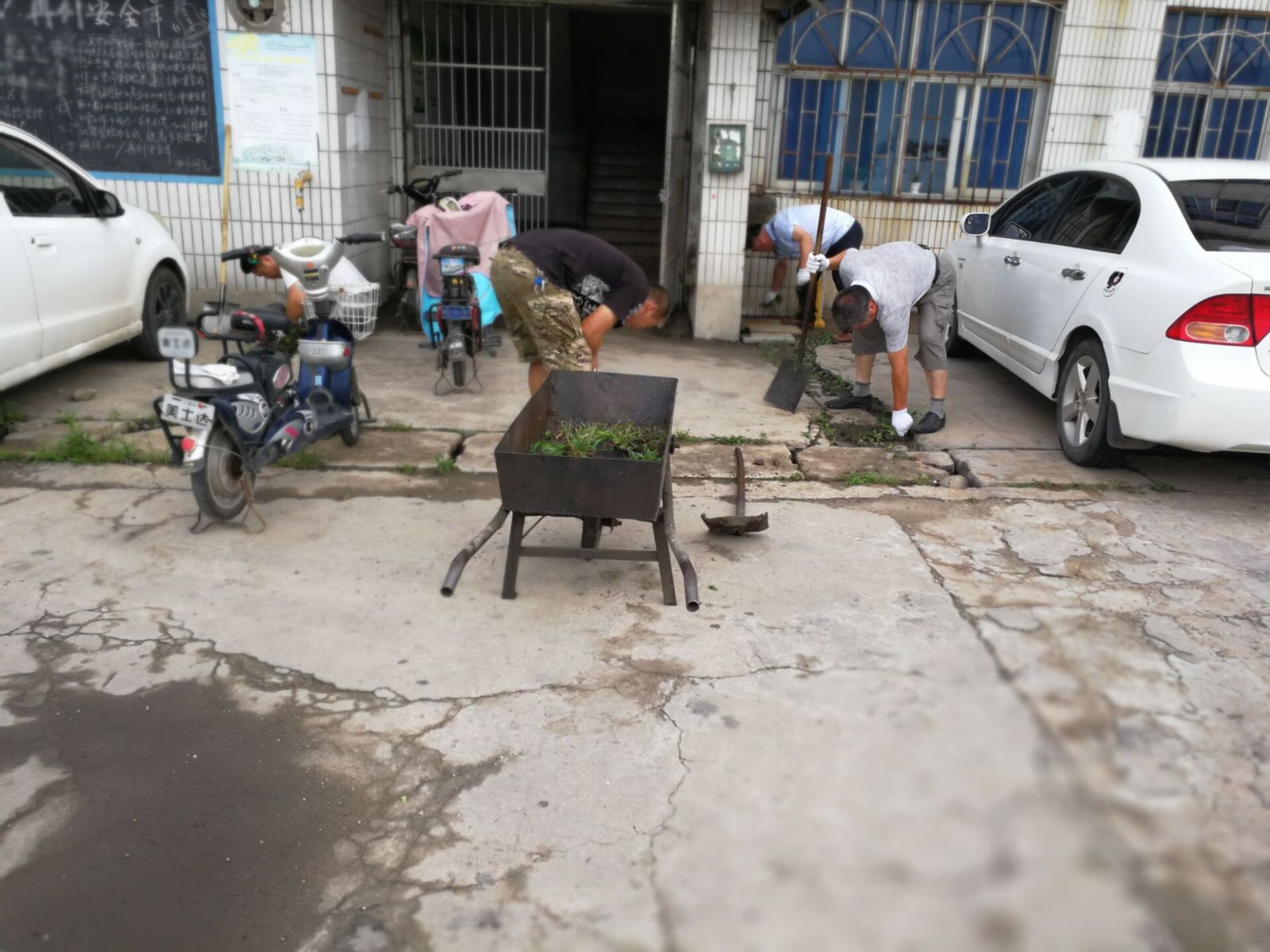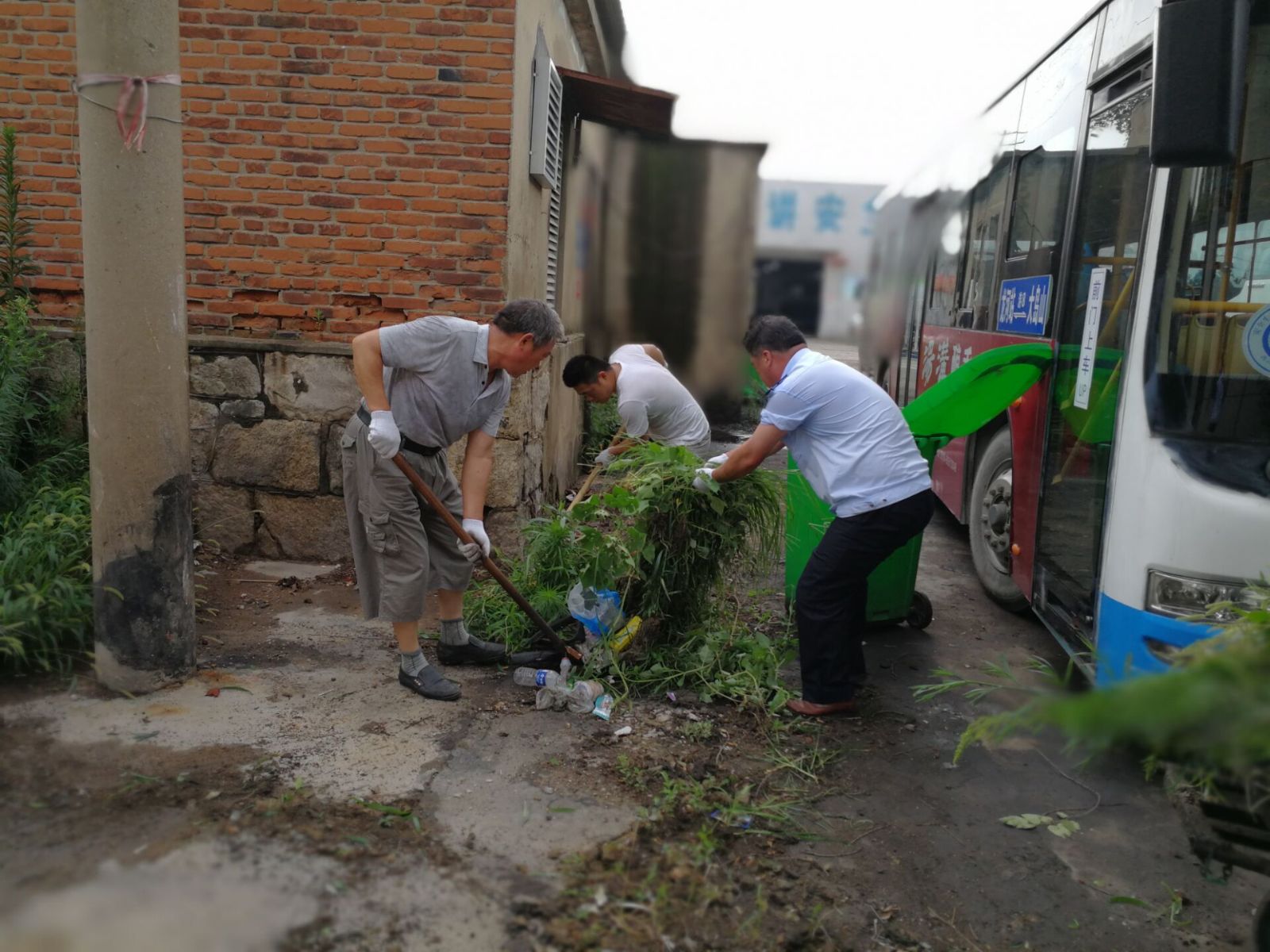 7月20日早上9點,楊國軍帶領幾名修理工,冒著酷暑,將辦公樓至修理車間周圍雜草清理干凈,用實際行動營造良好的創(chuàng)衛(wèi)氛圍。