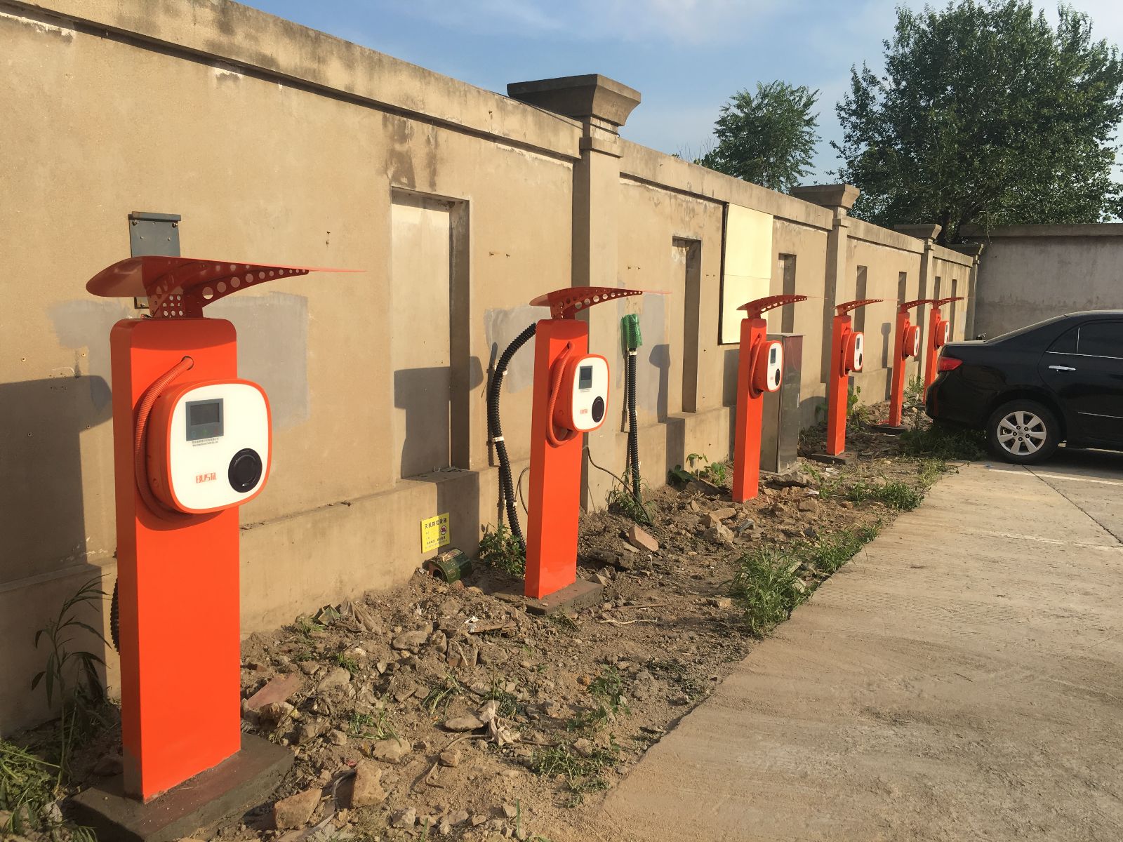 以滿足車輛運營需求為前提,本次計劃在東部公交停車場、西城公交總站、海州客運站、新華公交總站四個場站建設交流充電樁,共建設24套。盡管充電樁安裝時室外氣溫40度,配電室溫度高達60度,但安全技術科相關人員和施工人員仍然不懼高溫,堅持在一線,爭取在車輛到達之前完成交流充電樁安裝工作。