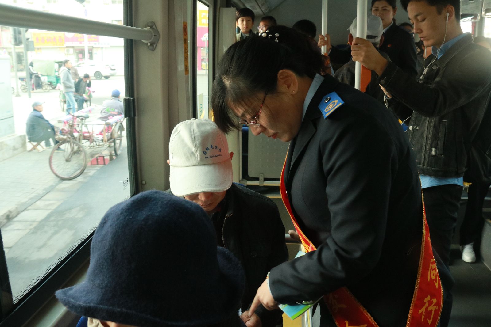 活動(dòng)當(dāng)天,23路“敬老文明線”投入全部10臺(tái)運(yùn)力,加密班次,并在23路“敬老文明線”車廂內(nèi)營(yíng)造敬老、愛老、助老的宣傳氛圍,增強(qiáng)市民敬老、愛老意識(shí)。參加活動(dòng)的行管后服人員在車廂內(nèi)為乘車?yán)夏耆擞纤拖路?wù)同時(shí)在車內(nèi)、站點(diǎn)發(fā)放公交出行手冊(cè),宣傳公交的同時(shí)宣傳敬老文化。