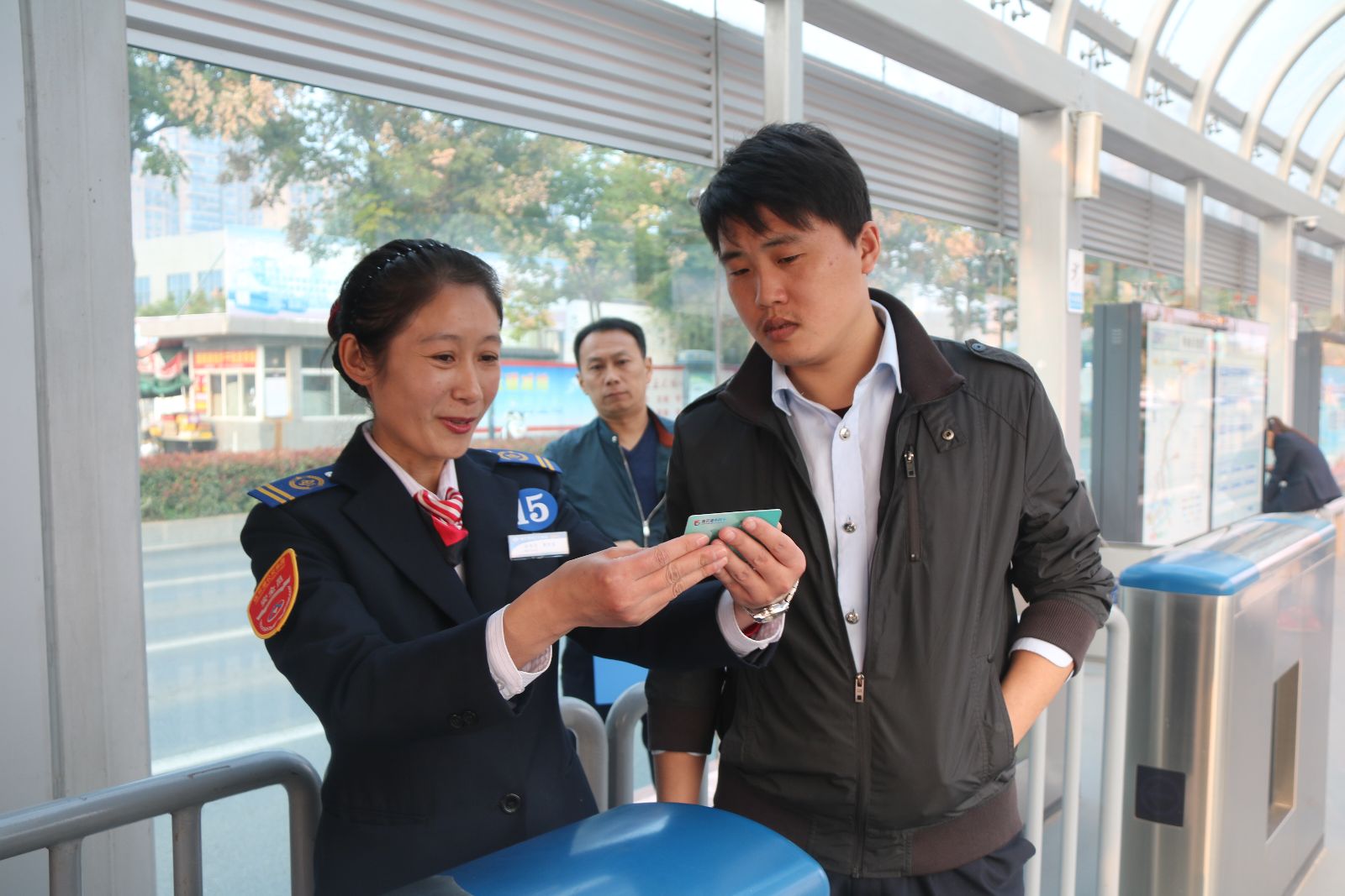 2016年10月27日,在公交集團(tuán)的籌備和組織下,公交快速公司站務(wù)員服務(wù)技能競賽活動圓滿結(jié)束。本次技能競賽分為理論考試和現(xiàn)場技能考核兩個部分。145名站務(wù)員通過初賽、復(fù)賽,最終15名優(yōu)秀站務(wù)員被選拔出來參加決賽,決賽在郁海廣場上行站和下行站兩個考點進(jìn)行,分為售檢票操作和應(yīng)急處理二個部分,并對站務(wù)員進(jìn)行綜合打分。
