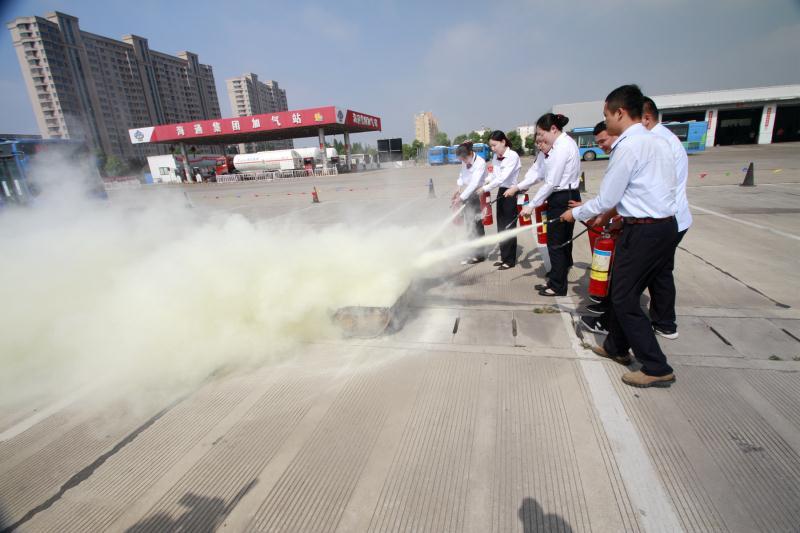 本次應(yīng)急演練的主要內(nèi)容為公交車突發(fā)事件處置,演練共分為兩個部分,第一項由西區(qū)安全員劉海東對新入職員工講解滅火器的正確使用方法及日常工作中檢查的注意事項。第二項,針對近期日益嚴峻的安全環(huán)境模擬運行中的公交車遇車突發(fā)人為縱火,駕駛員采取應(yīng)急處置措施疏散乘客,確保乘客安全。