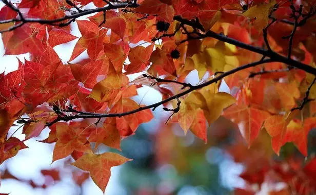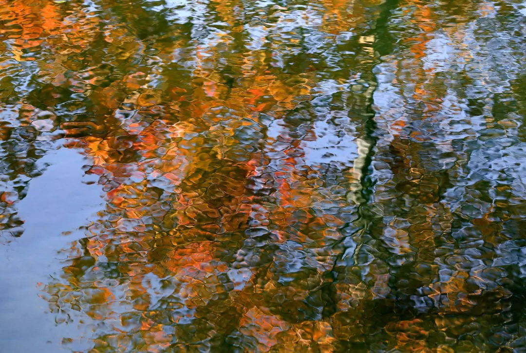 楓葉呈現(xiàn)多姿多彩的顏色,淡黃的、褐黃的、火紅的、橘紅的,紅黃綠相間,點(diǎn)綴湖畔、山 。當(dāng)楓葉飄落在清澈的岸邊,宛如天然生成的水晶標(biāo)本。