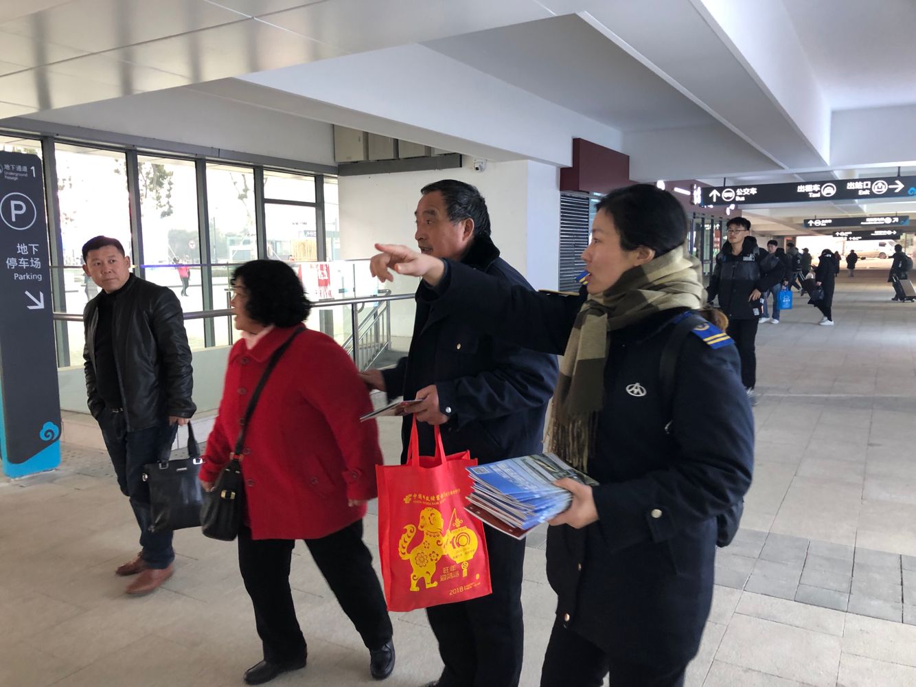 臨近春節(jié),正值出門在外的學(xué)生流,務(wù)工流返鄉(xiāng)高峰段,同時(shí)恰逢連云港新火車站啟用,為加強(qiáng)旅客公交出行的宣傳和引導(dǎo),倡導(dǎo)文明乘車,提升公交滿意度。近日,公交集團(tuán)公交事業(yè)一部組織志愿者來到了連云港新火車站出站口,全天候?yàn)槁每吞峁┝x務(wù)咨詢及導(dǎo)乘服務(wù),并發(fā)放2019年連云港市公交出行宣傳手冊(cè),方便旅客出行。