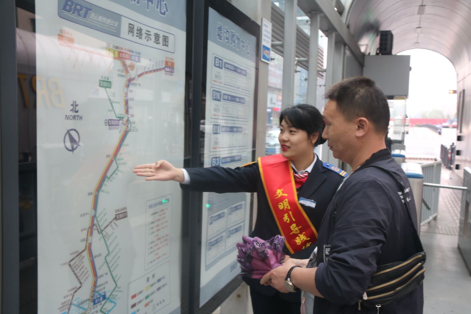 公交集團(tuán)快速公交事業(yè)部BRT一號(hào)線站務(wù)班組包括10個(gè)小組,成立于2012年10月,現(xiàn)有站務(wù)員146名,工作在BRT一號(hào)線56個(gè)站臺(tái),其中共產(chǎn)黨員1名、共青團(tuán)員19名,“與雷鋒車(chē)同行示范崗”5對(duì),2017年BRT一號(hào)線全線站臺(tái)被連云港市文明辦授予“文明示范站”。站務(wù)班組堅(jiān)持踐行社會(huì)主義核心價(jià)值觀,將雷鋒車(chē)精神發(fā)揚(yáng)到站臺(tái),自成立以來(lái),拾金不昧、樂(lè)于助人、甘于奉獻(xiàn)等好事層出不窮,據(jù)統(tǒng)計(jì)好人好事5000余件,錦旗18面。