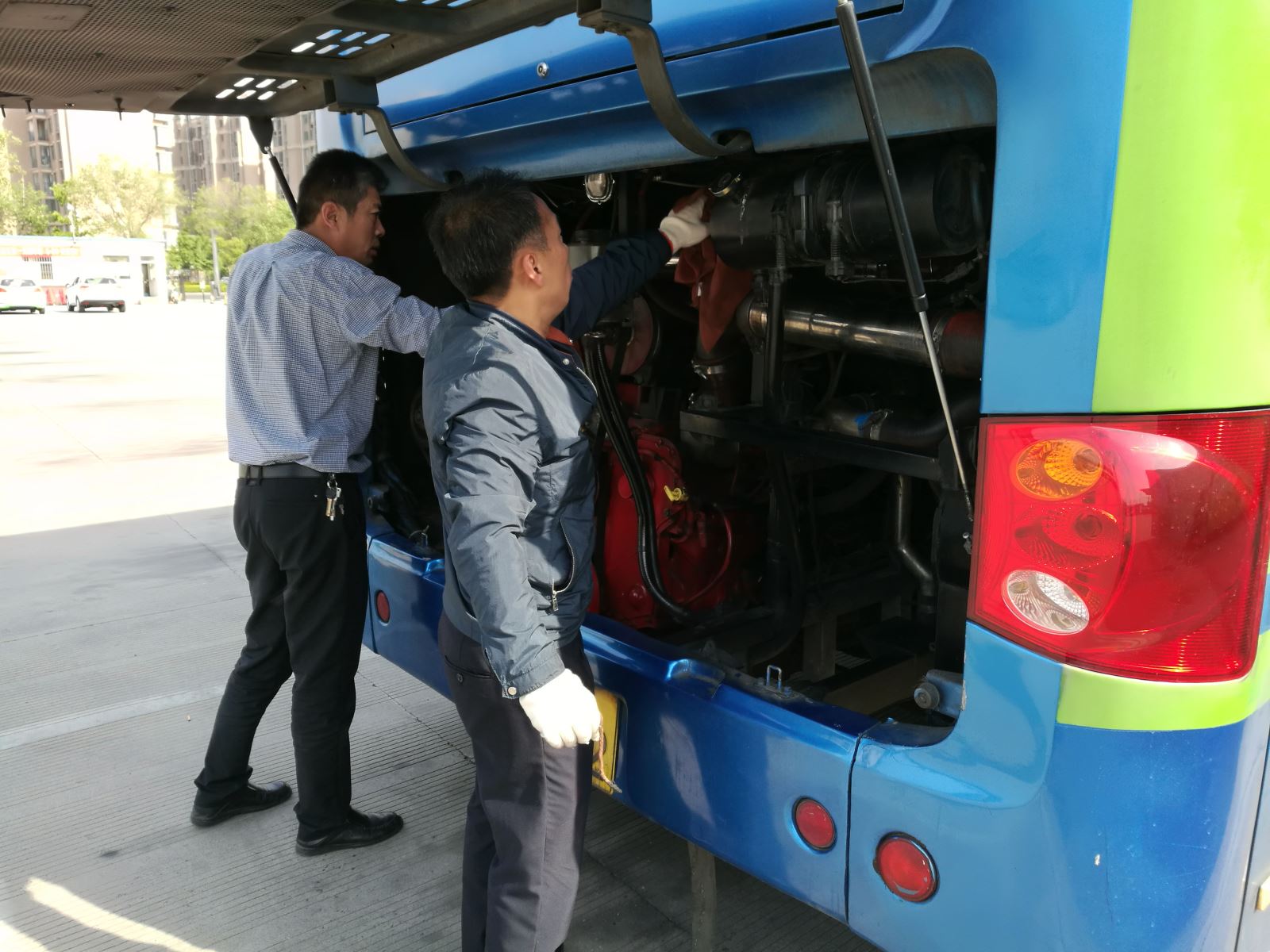 結(jié)合公交集團(tuán)開展愛(ài)車標(biāo)兵活動(dòng),進(jìn)一步提高駕駛員對(duì)車輛發(fā)動(dòng)機(jī)衛(wèi)生的重視,5月27日,公交集團(tuán)快速公交事業(yè)部班子成員等相關(guān)人員組成檢查小組開展車輛發(fā)動(dòng)機(jī)衛(wèi)生檢查工作。