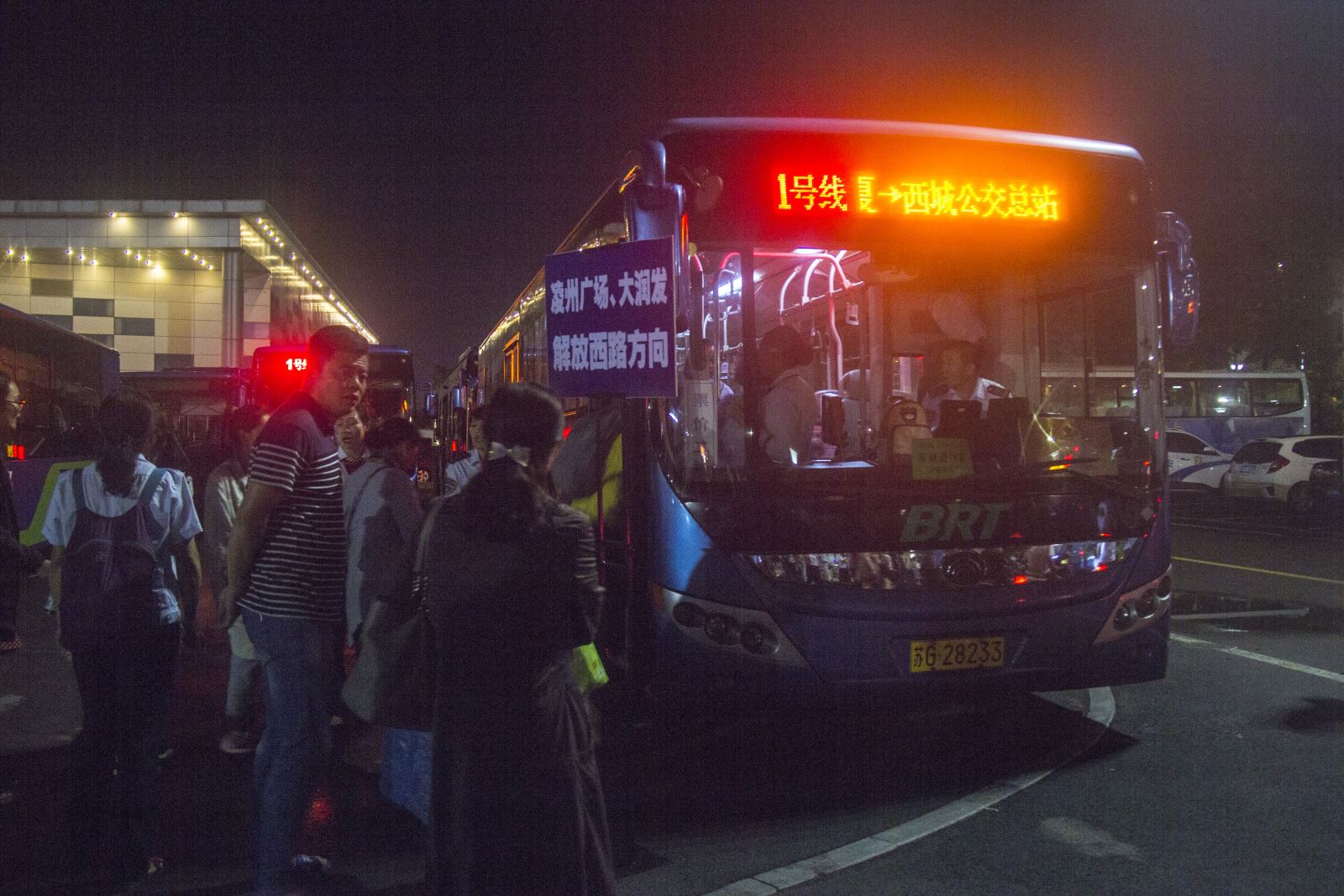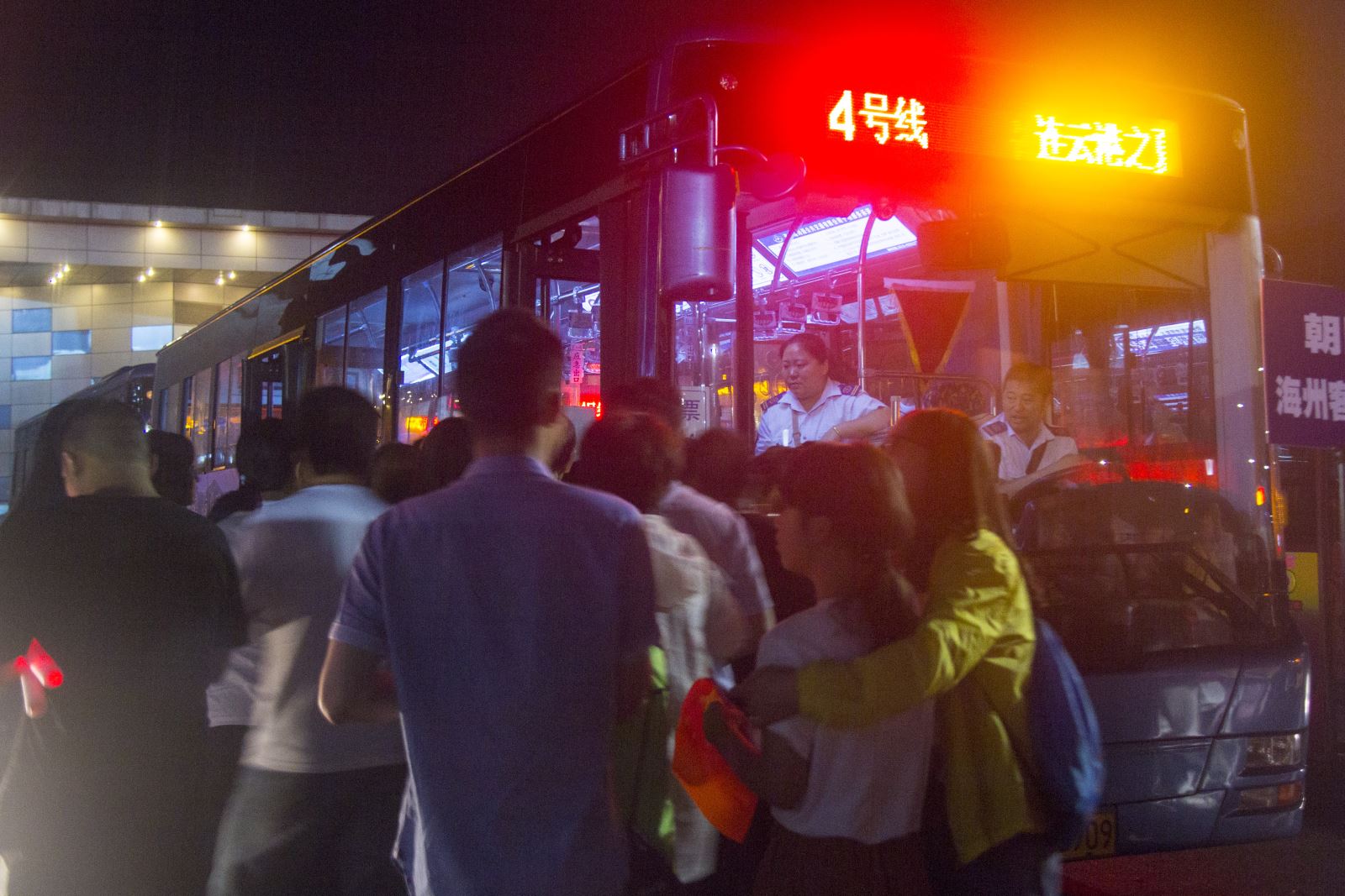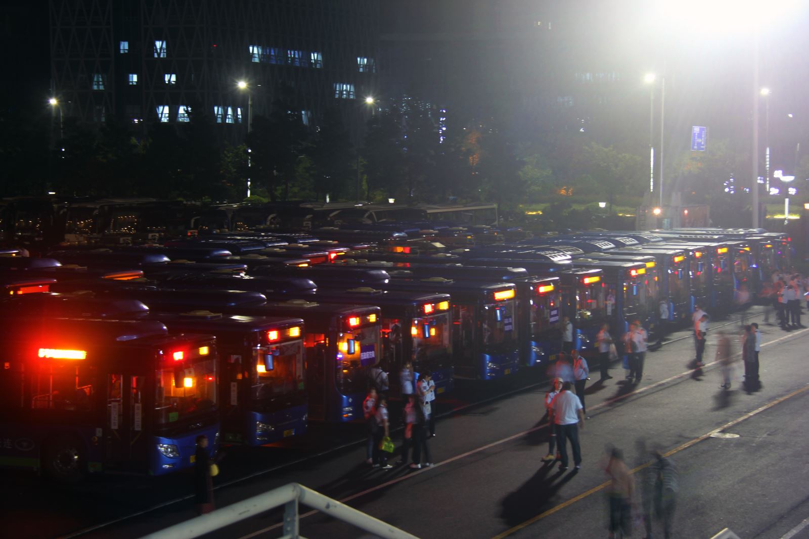 演唱會散場后,公交集團(tuán)投入50臺運力在體育中心東門停車場等候,結(jié)合客流出行需求,分別開通了途經(jīng)市區(qū)解放路、蒼梧路、海連路、朝陽路、港城大道等主干道的5條直通車,同時對BRT一號線進(jìn)行了班次加密。集團(tuán)領(lǐng)導(dǎo)班子成員、機(jī)關(guān)各部門、權(quán)屬單位主要負(fù)責(zé)人一同到達(dá)現(xiàn)場,共同參與現(xiàn)場觀眾的輸送工作,確保2019“連云港之夏”交通運輸保障工作的圓滿完成。經(jīng)統(tǒng)計,演唱會散場后公交集團(tuán)現(xiàn)場疏散客流共約2045人。