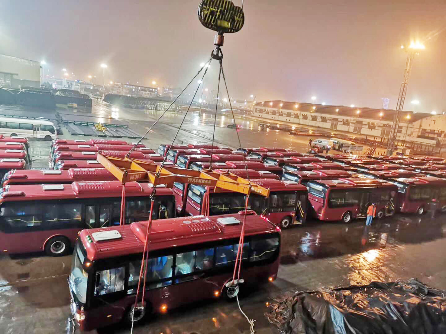 3月6日,公交集團(tuán)機(jī)務(wù)技術(shù)事業(yè)部接到出口委內(nèi)瑞拉的350臺(tái)宇通客車出口業(yè)務(wù),疫情在還沒有完全結(jié)束的情況下,秉著疫情防控和生產(chǎn)業(yè)務(wù)兩手抓的工作態(tài)度,負(fù)責(zé)出口業(yè)務(wù)的客戶中心主任耿玉兵組織作業(yè)人員共14人提前進(jìn)行了一次港口服務(wù)疫情防控工作的有關(guān)培訓(xùn),并配備充足疫情防控物資赴港口開展服務(wù)工作。為防控疫情期間順利完成任務(wù),大家早晚測(cè)量體溫,佩戴口罩,車輛清洗消毒,中午,打來快餐在作業(yè)現(xiàn)場(chǎng)分散就餐,大家日夜兼程,放棄午休,加班加點(diǎn),花了3天時(shí)間就完成了350臺(tái)高檔車裝船前的整備工作。