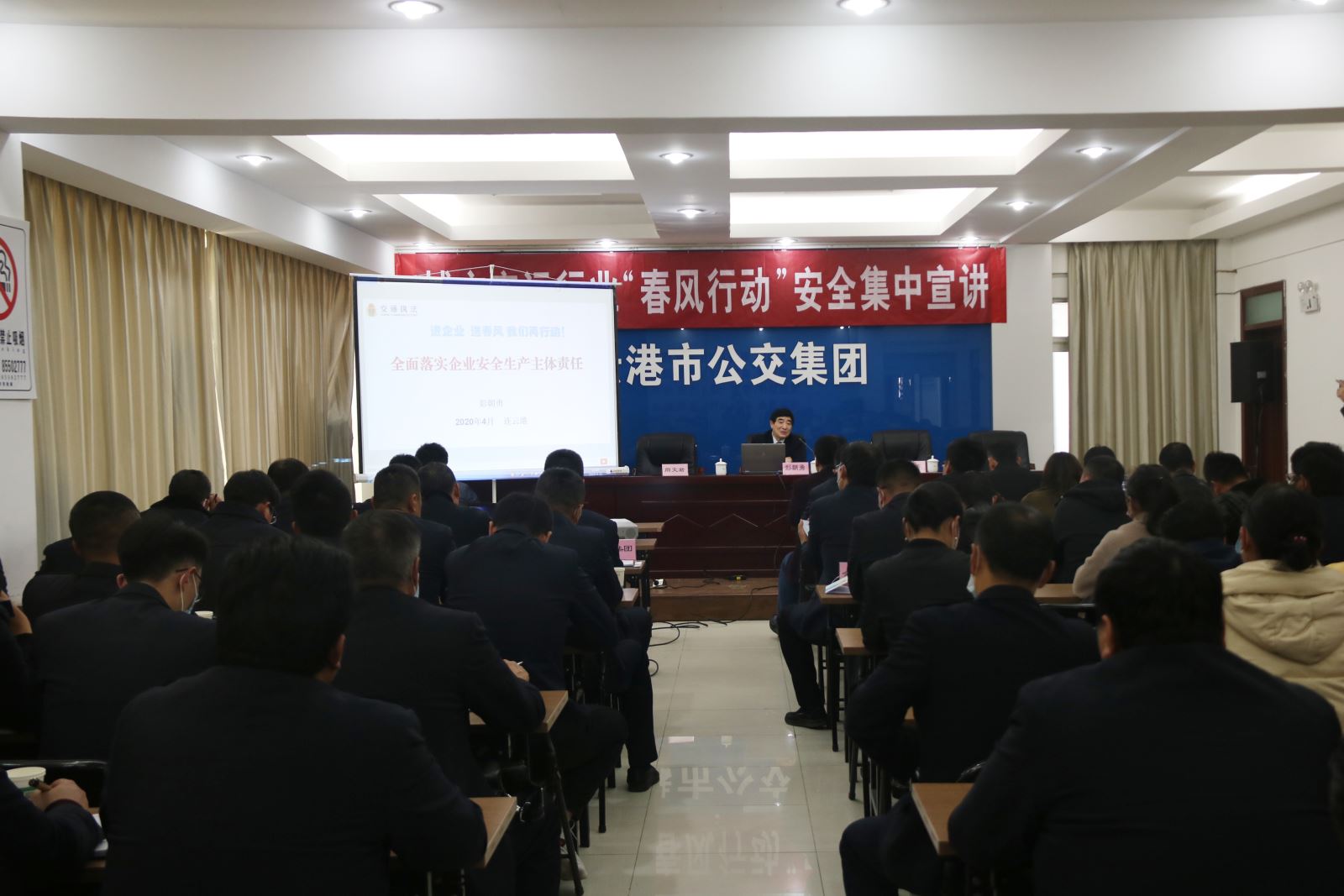 為進(jìn)一步強(qiáng)化企業(yè)落實(shí)安全生產(chǎn)主體責(zé)任意識(shí),推動(dòng)企業(yè)深入學(xué)習(xí)貫徹《企業(yè)落實(shí)安全生產(chǎn)主體責(zé)任重點(diǎn)事項(xiàng)清單》。市運(yùn)管處于2020年4月21日下午,在公交集團(tuán)三樓會(huì)議室組織開展 “春風(fēng)行動(dòng)”安全集中宣講,活動(dòng)由市運(yùn)管處安監(jiān)科嵇亞軍科長主持,安全管理專家?guī)斐蓡T、安全標(biāo)準(zhǔn)考評(píng)專家彭朝勇宣講,公交集團(tuán)黨委書記總經(jīng)理周文君致辭,公交集團(tuán)、金盛公交、全幅出租等9家城市客運(yùn)企業(yè)80余名各級(jí)安全管理人員參加。