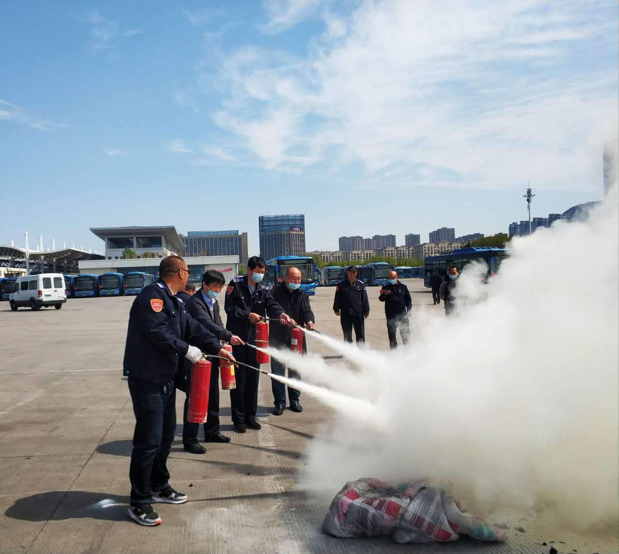 公交車作為重要的公共交通工具,消防安全一直備受社會關(guān)注。2020年4月27日,快速公交事業(yè)部東城分公司利用前期更換的舊滅火器,組織駕駛員開展了一場消防滅火實(shí)戰(zhàn)演練。