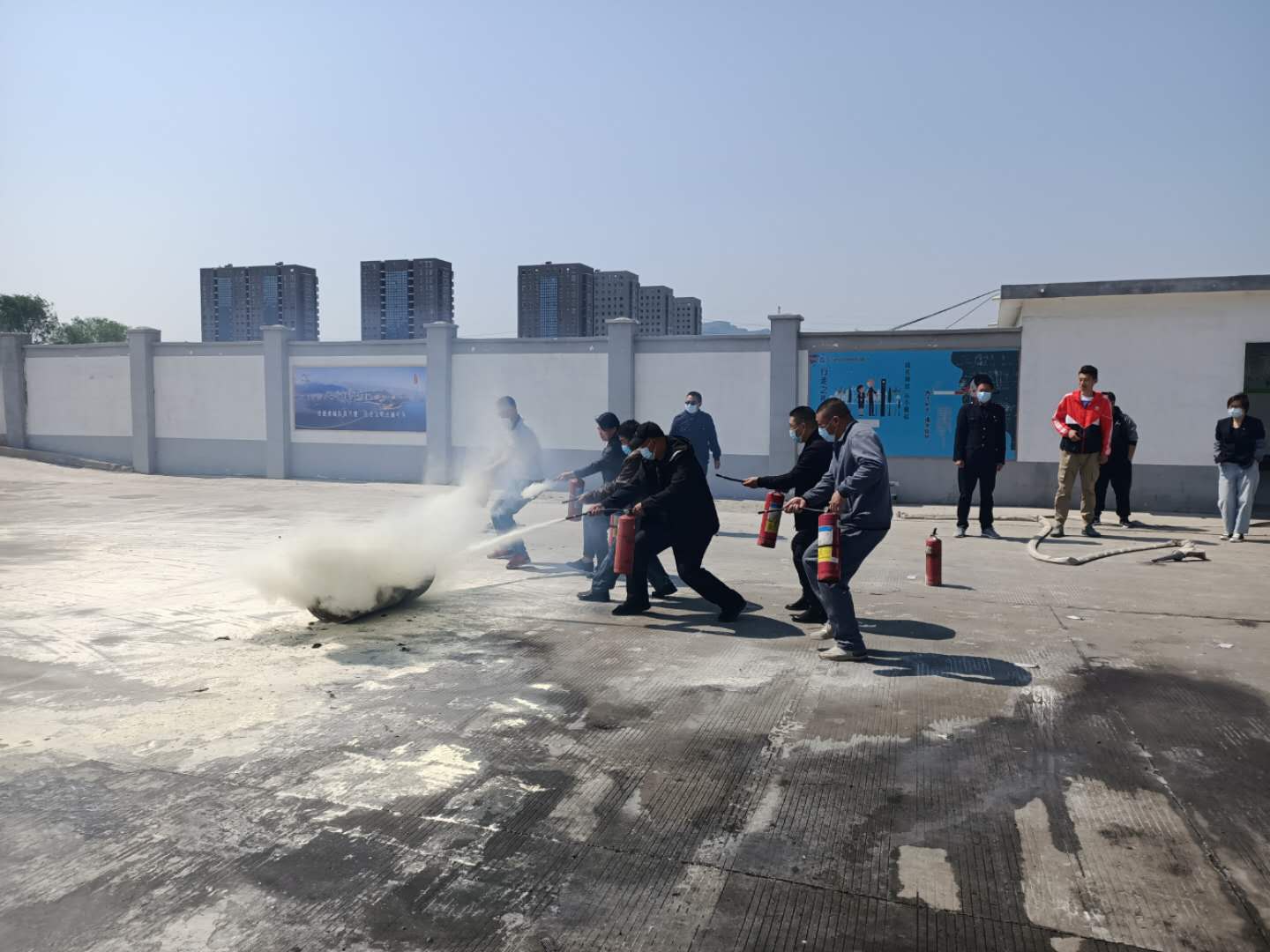 本次消防滅火演練東城分公司共安排了60只手提式干粉滅火器和1個水基型滅火器、1個鐵制半式油桶、10KG木材、20升汽油作為消防器材,由分公司副經(jīng)理呂輝詳細(xì)講解干粉滅火器、水基型滅火器不同的性能、滅火器安全栓的使用、燃火點(diǎn)的噴射距離和位置并進(jìn)行了現(xiàn)場操作。對火災(zāi)的預(yù)防、逃生自救要領(lǐng)重點(diǎn)進(jìn)行了培訓(xùn),要求駕駛員在遇到車輛發(fā)生火災(zāi)時,緊急靠邊停車,立即疏散乘客至安全區(qū)域,正確操作滅火器滅火,做到最大限度地減少財(cái)產(chǎn)損失和人員傷亡,駕駛員們進(jìn)行模擬和實(shí)戰(zhàn)操作。